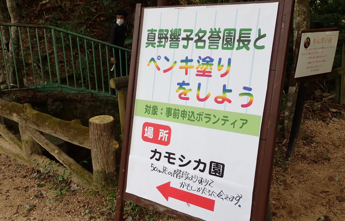 たくさんのお客さんがペンキ塗り作業をしているので、カモシカのカモン君