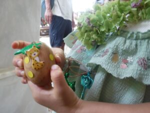 もりづくり基金では、六甲山の間伐材からできた木の卵にお絵描きしてもらい、木のぬくもりに触れてもらうワークショップと六甲山の間伐材製品販売、