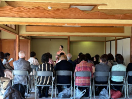 外のにぎわいとは対照的に、和室内は静かで落ち着いた空気に包まれ、参加者の皆さまは朗読に深く聞き入る様子が印象的でした。