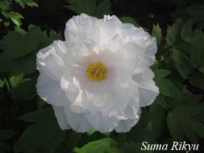 純白色で、八重咲きの大輪品種です。