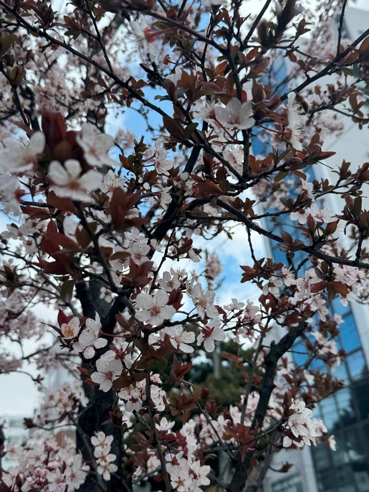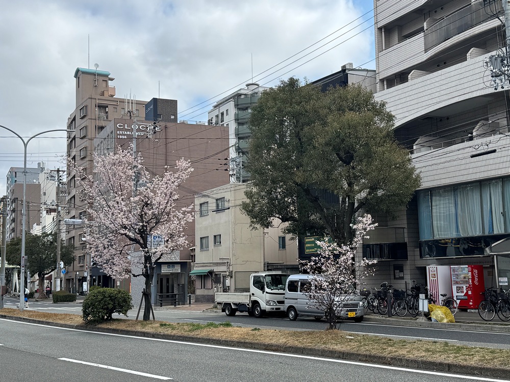 中央幹線(元町~西元町)ベニバスモモ- 5分咲き 3/18現在