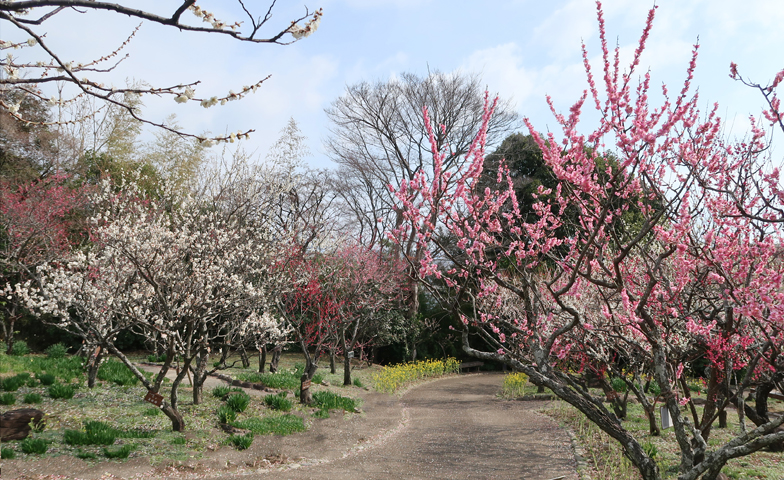 梅園には約25種150本の梅が植栽されており、1月下旬から3月上旬にかけて次々と開花していきます。