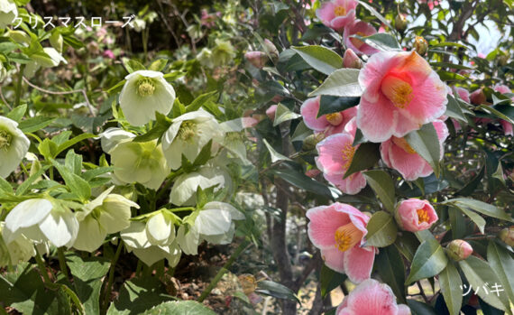 2月下旬~4月上旬:ツバキ(つばき園)、クリスマスローズ(植物園エリア温室周辺、東門周辺など)