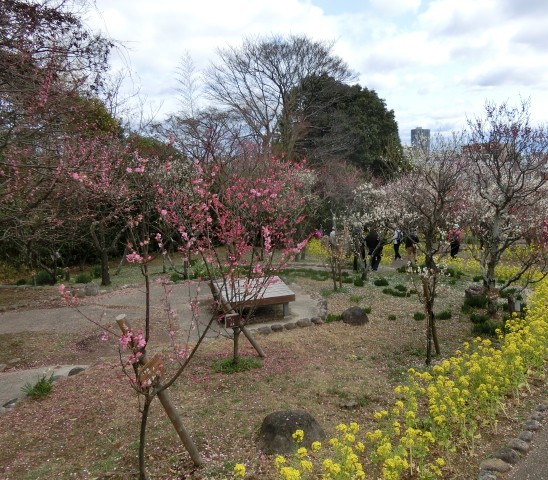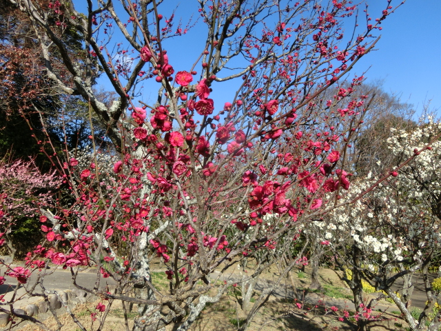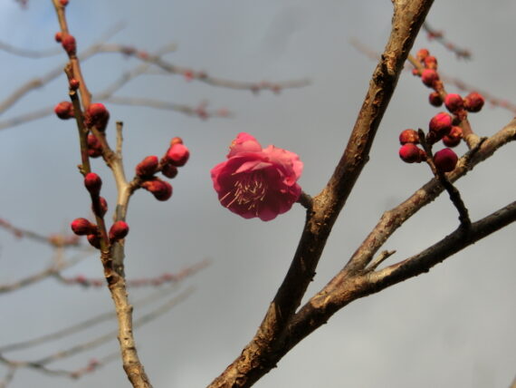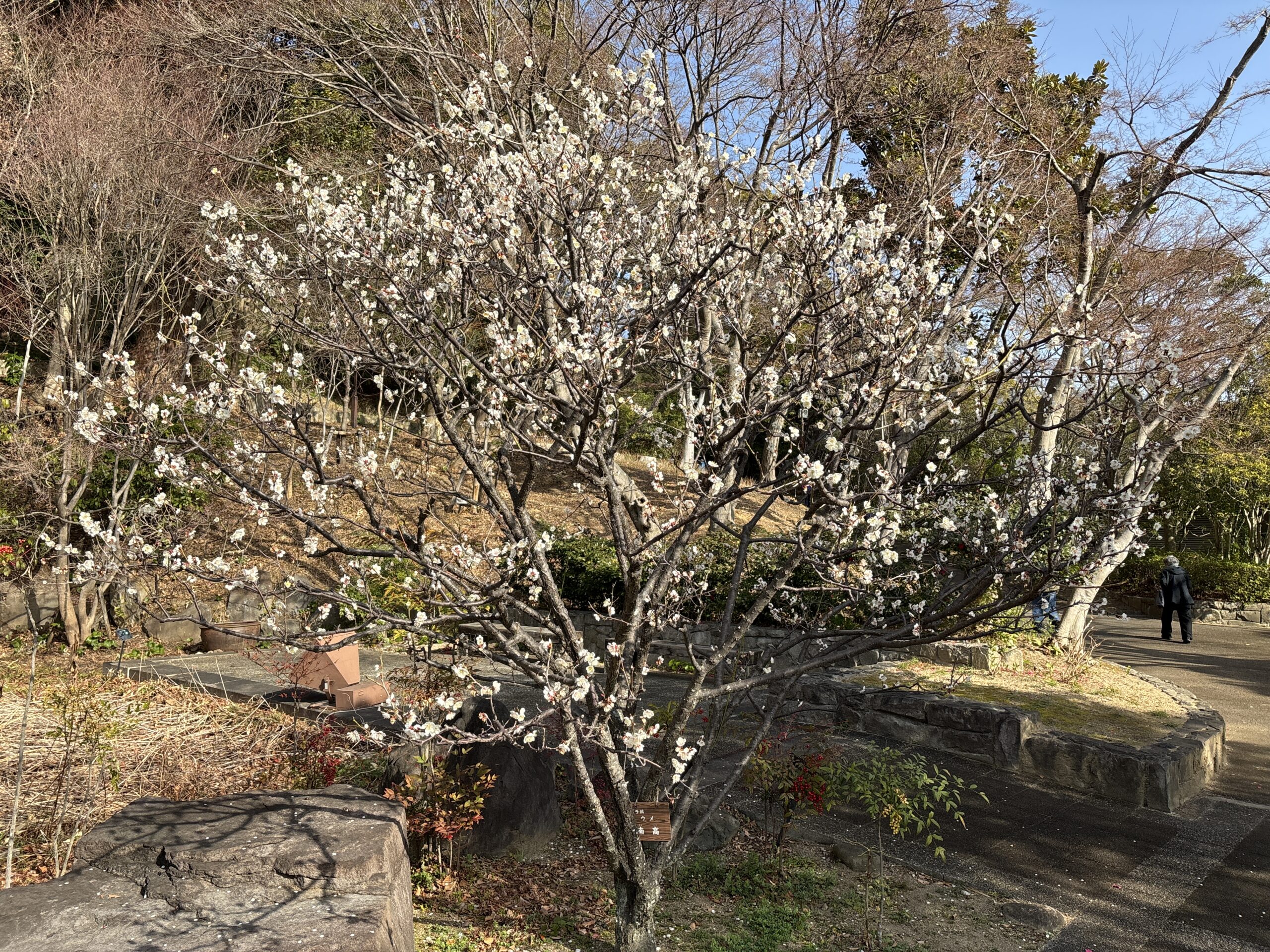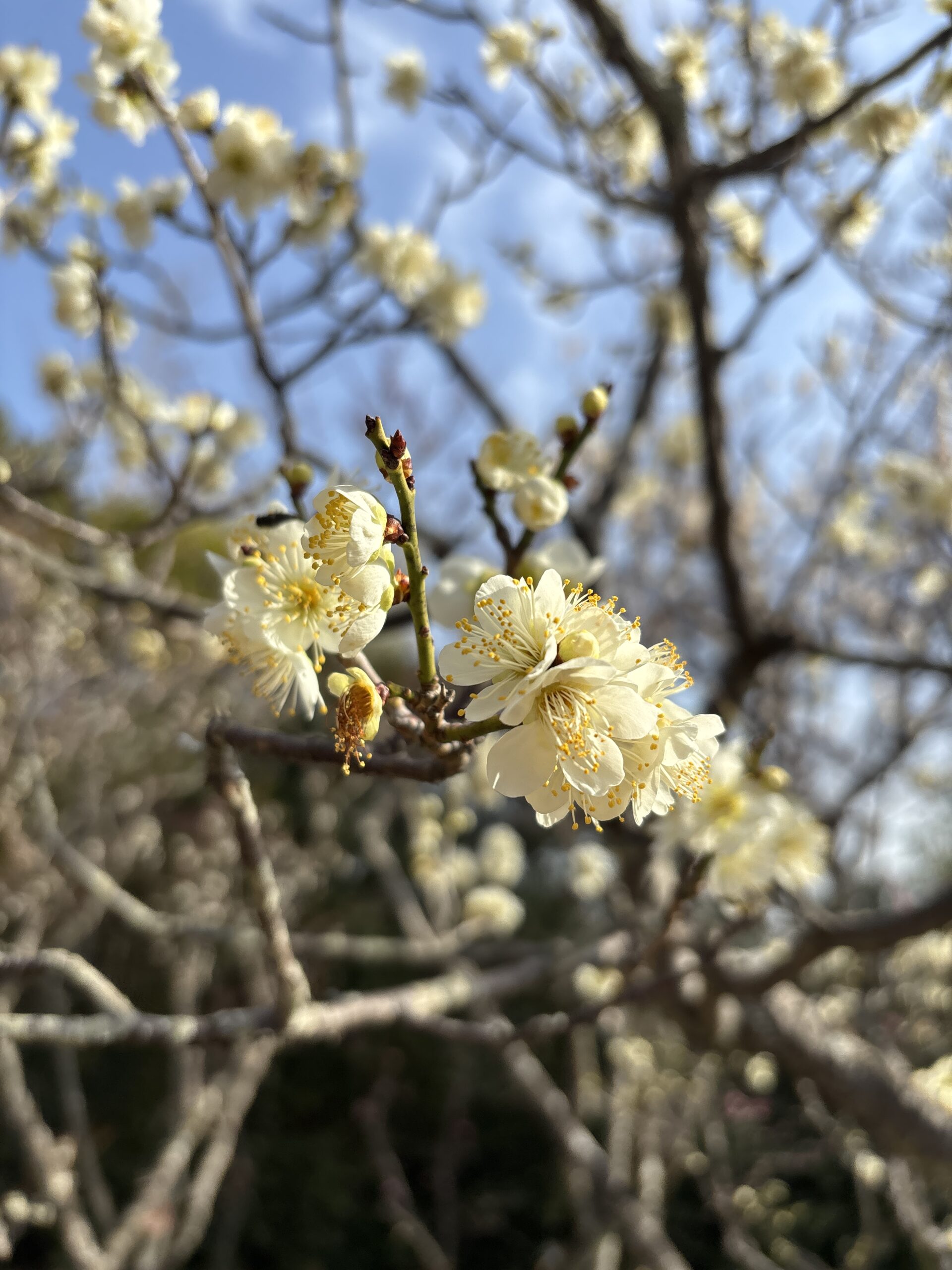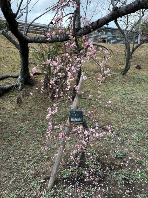 梅園では豊後や淋子梅などの遅咲きの梅のみが残っており、見頃の時期は終了となりました。