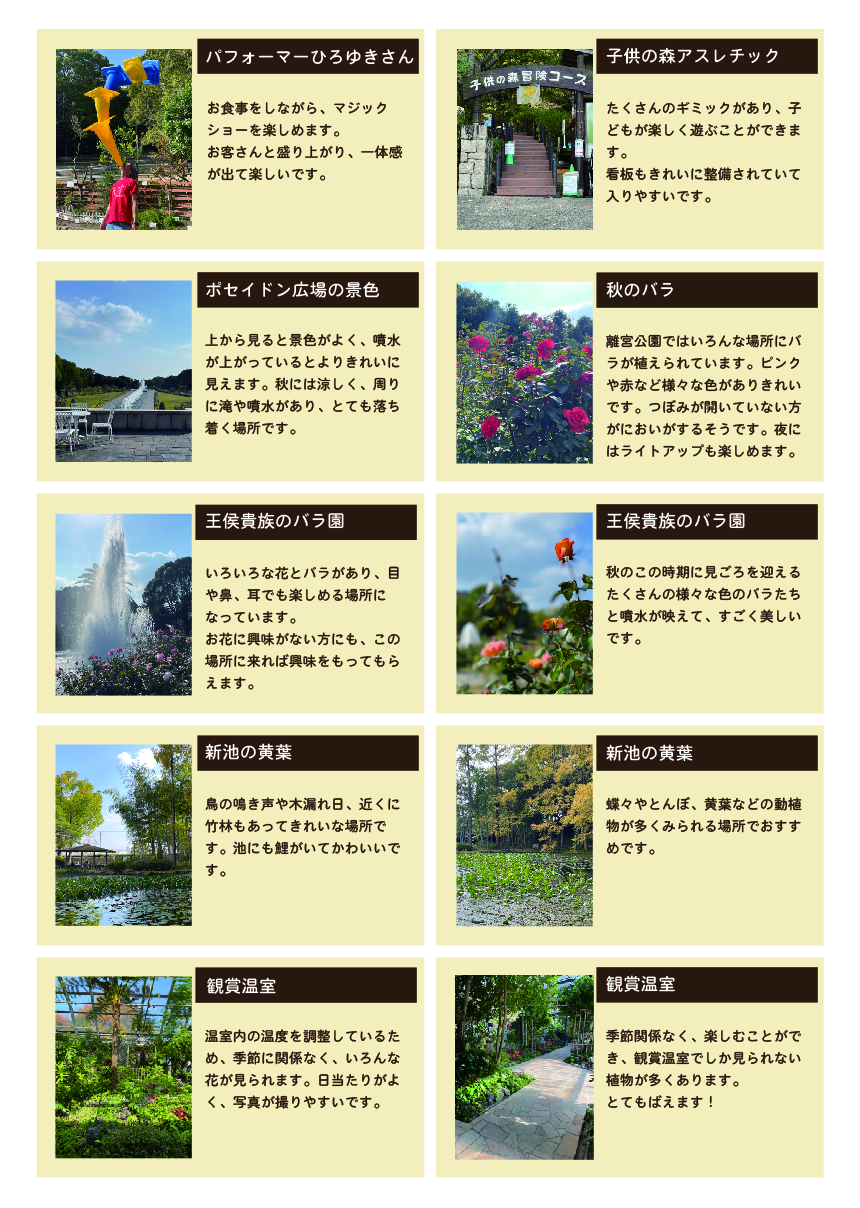 中学生の目線で切り取った離宮公園のおすすめスポットを見ながら、ぜひ散策してみてください。
