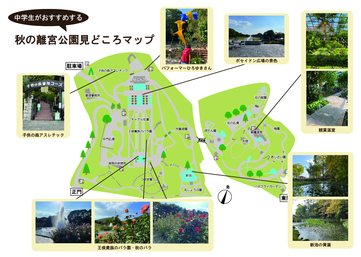 秋の離宮公園の見どころマップを中学生たちに、トライやるウィークの一環で作成しました。