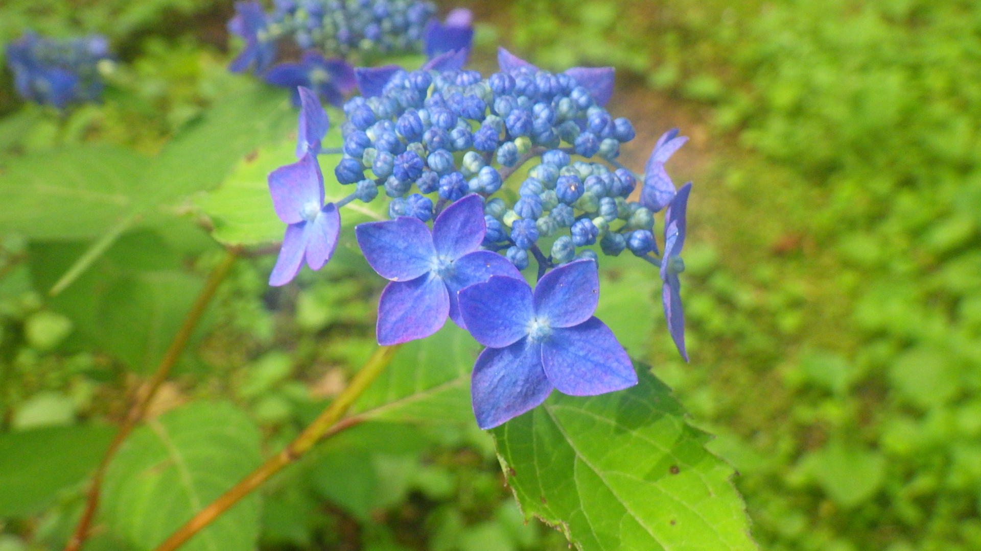 装飾花は多く、弁が重なる。深い藍色の花で花付がよい。枝数が多く丈夫で育てやすい。花房は小さく小輪。