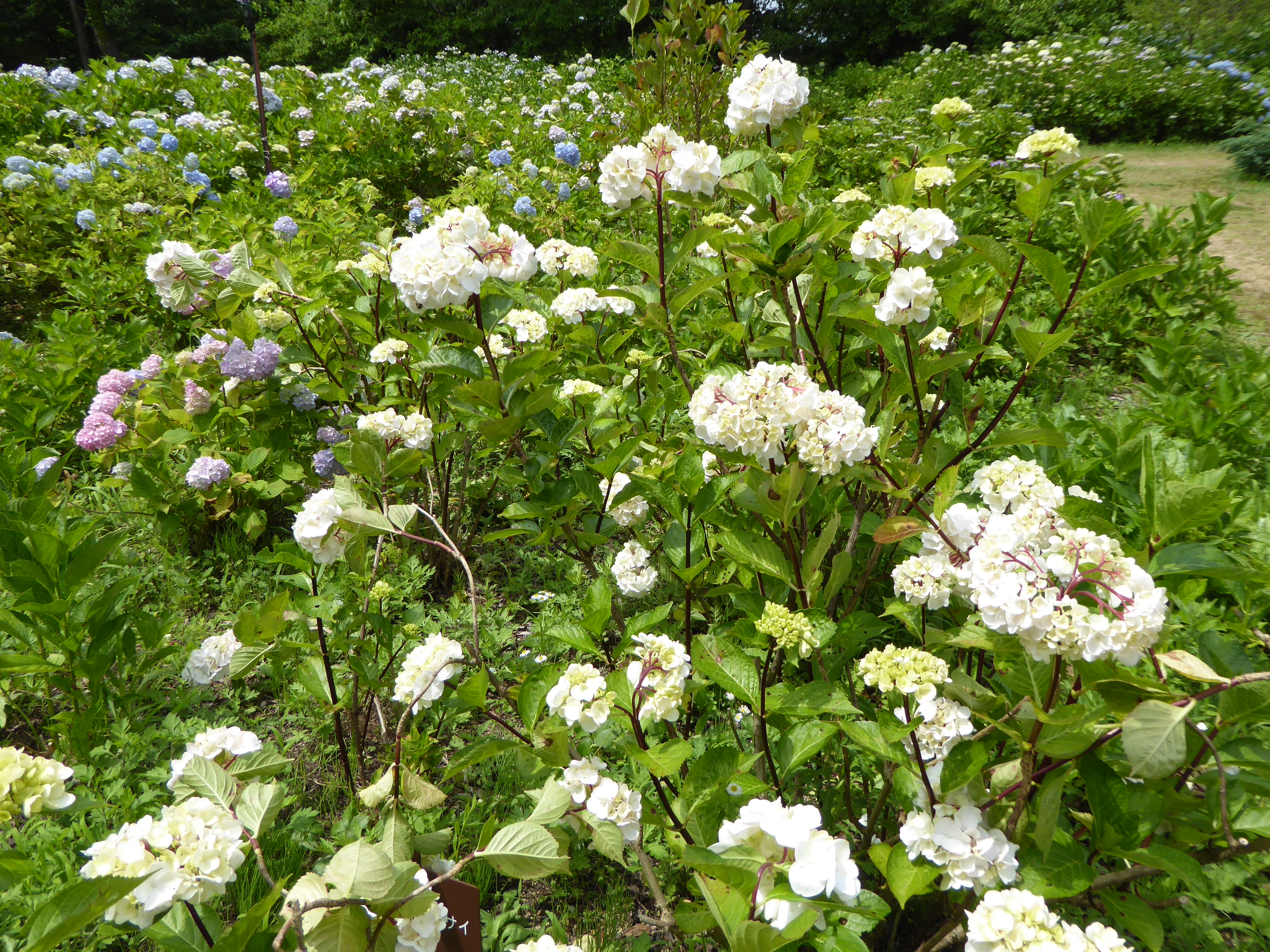 | 装飾花の色 | 土壌により青系~ピンク , 白, 青, ピンク |