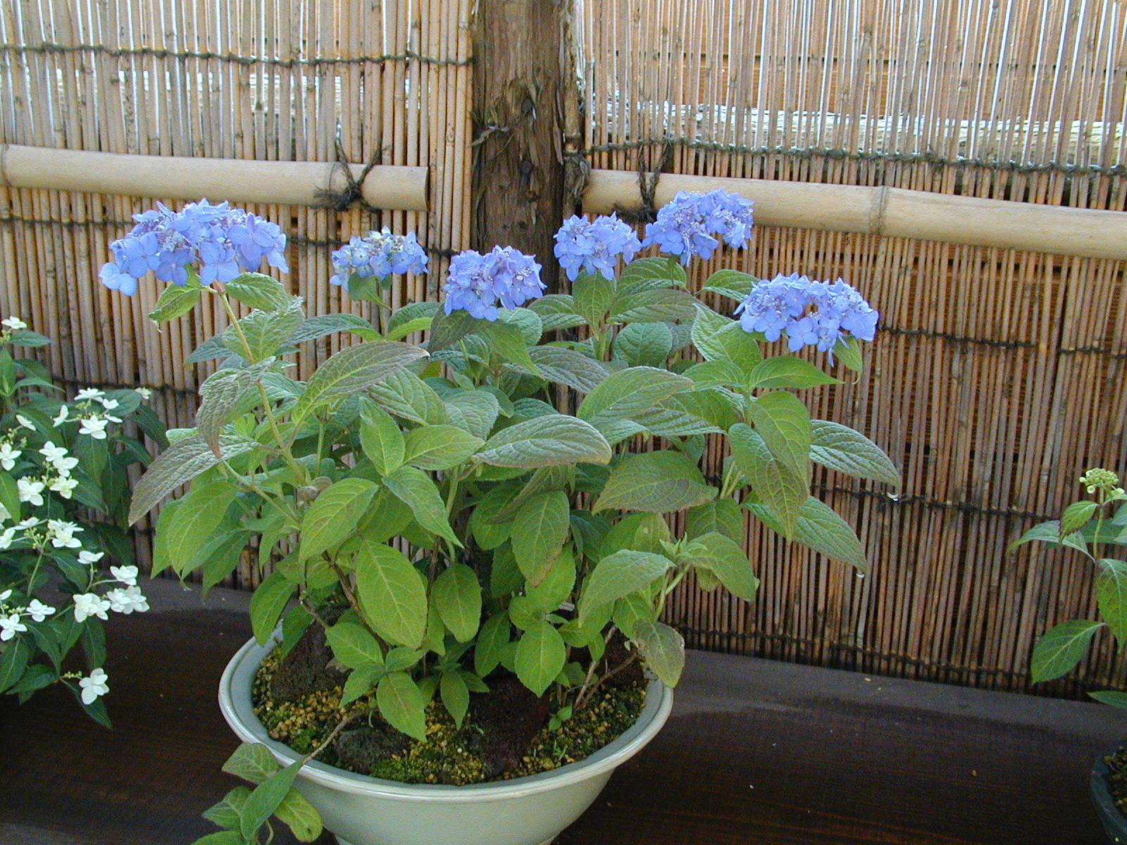 | 解説 | 紫-青の一重、テマリ-半テマリ咲きで両性花が多少混ざる。 |