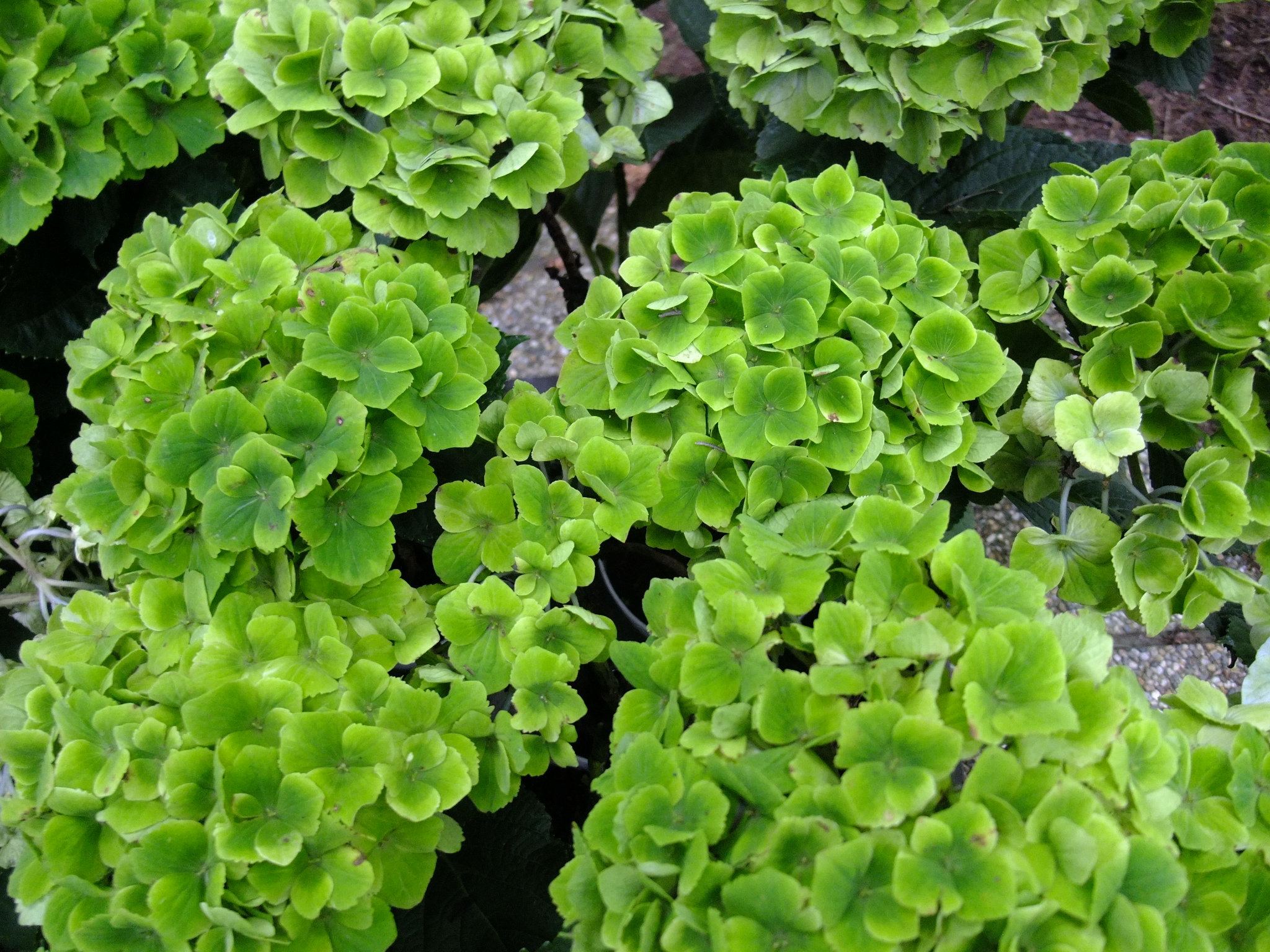 | 解説 | 開花期が長く、花色の変化が数回楽しめ、秋色まで観賞できるマジカルシリーズの一つ。黄緑色、桃色、濃緑色など様々に色が移り変わる品種。 |