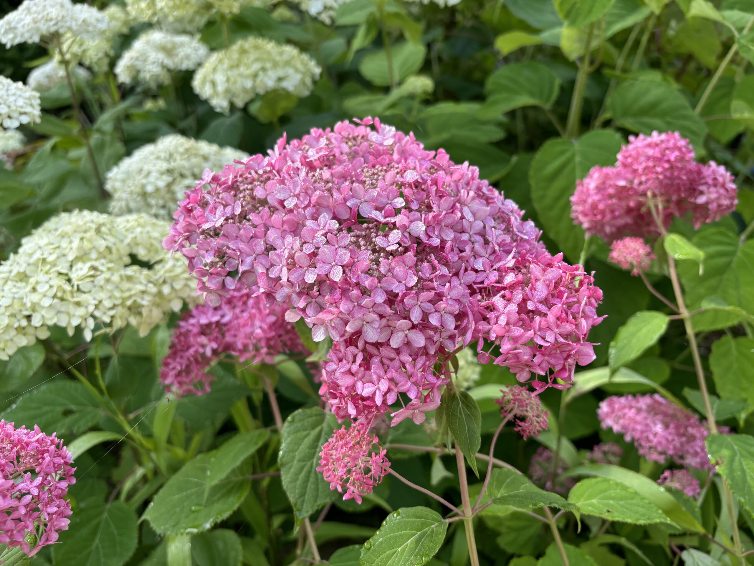 | 解説 | アナベルの改良品種。近年作出された。名前の通り桃色の花をつける。春に伸び出した充実した枝に花芽をつける新枝開花性。装飾花はやや小さい |