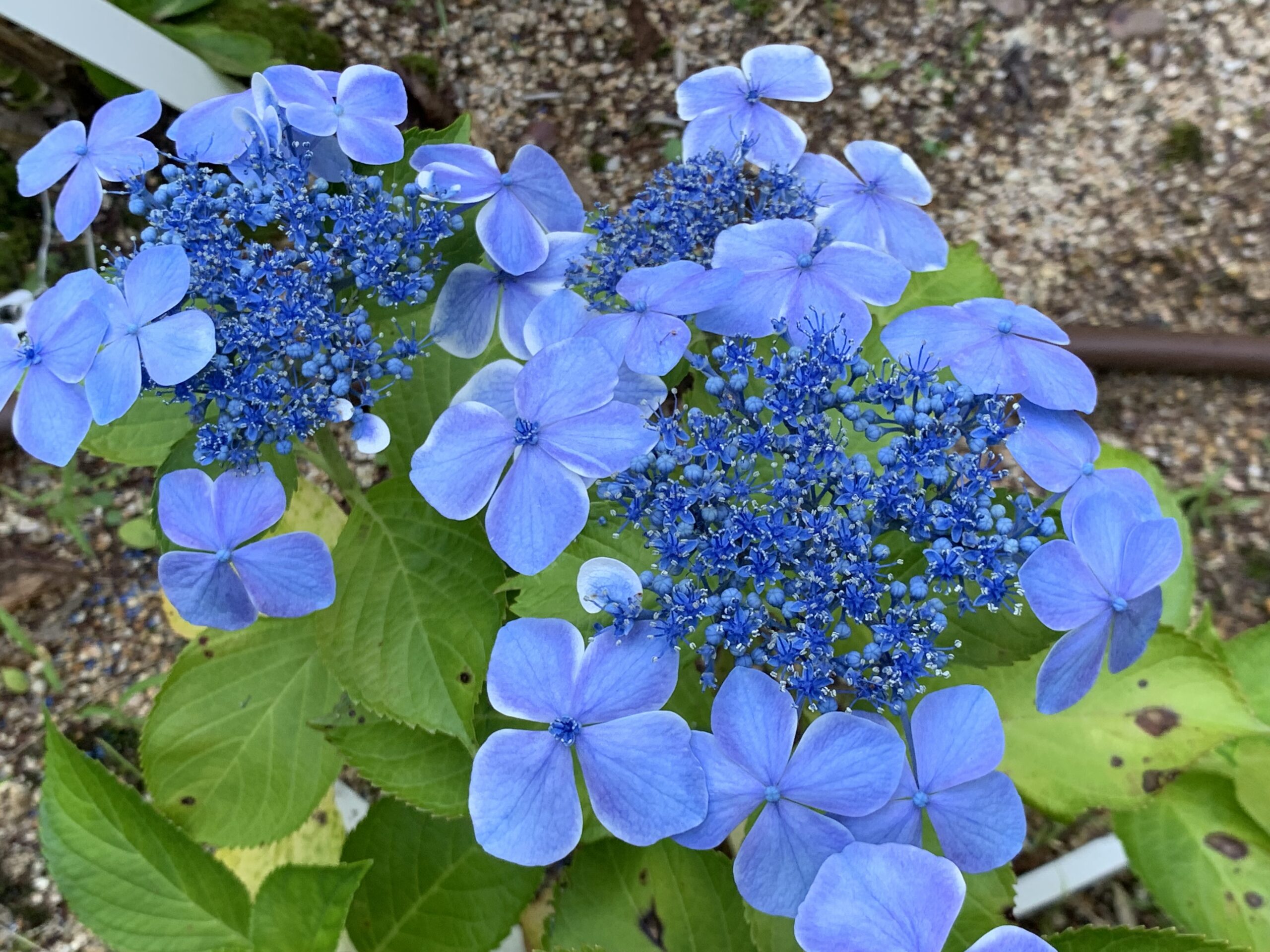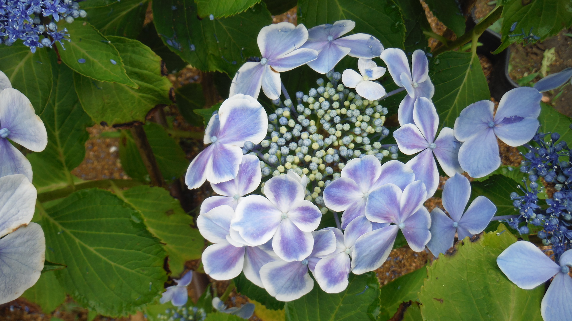 加茂セレクションの一品種。装飾花のふちに白い覆輪が入る