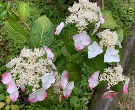 下段の4個体は東日本型(東のタイプは開花後時間が経つと装飾花に赤味が出るものがある)