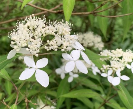 上記両者とも六甲山でよくみられる。ヤマアジサイより開花期がやや早く、5月末ころから咲き始める。コアジサイは両性花のみで花に香りがある。両者の自然交雑種をアマギコアジサイという。