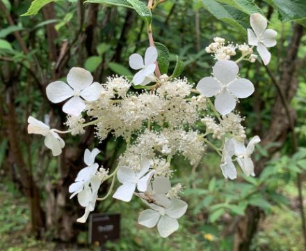 あじさい園では各種原種をはじめ、ヤマアジサイ‘シチダンカ’や‘ロッコウヤエデマリ’など六甲山に縁の深い種類を中心にヤマアジサイの優良な品種がご覧いただけます。