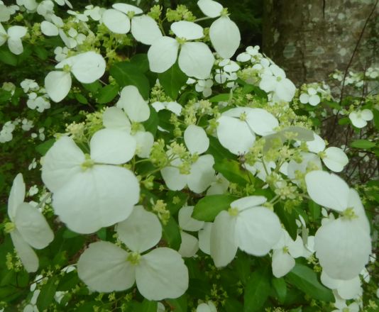 5月ごろから咲き出し、美しい白い装飾花をたくさんつけるコガクウツギ、