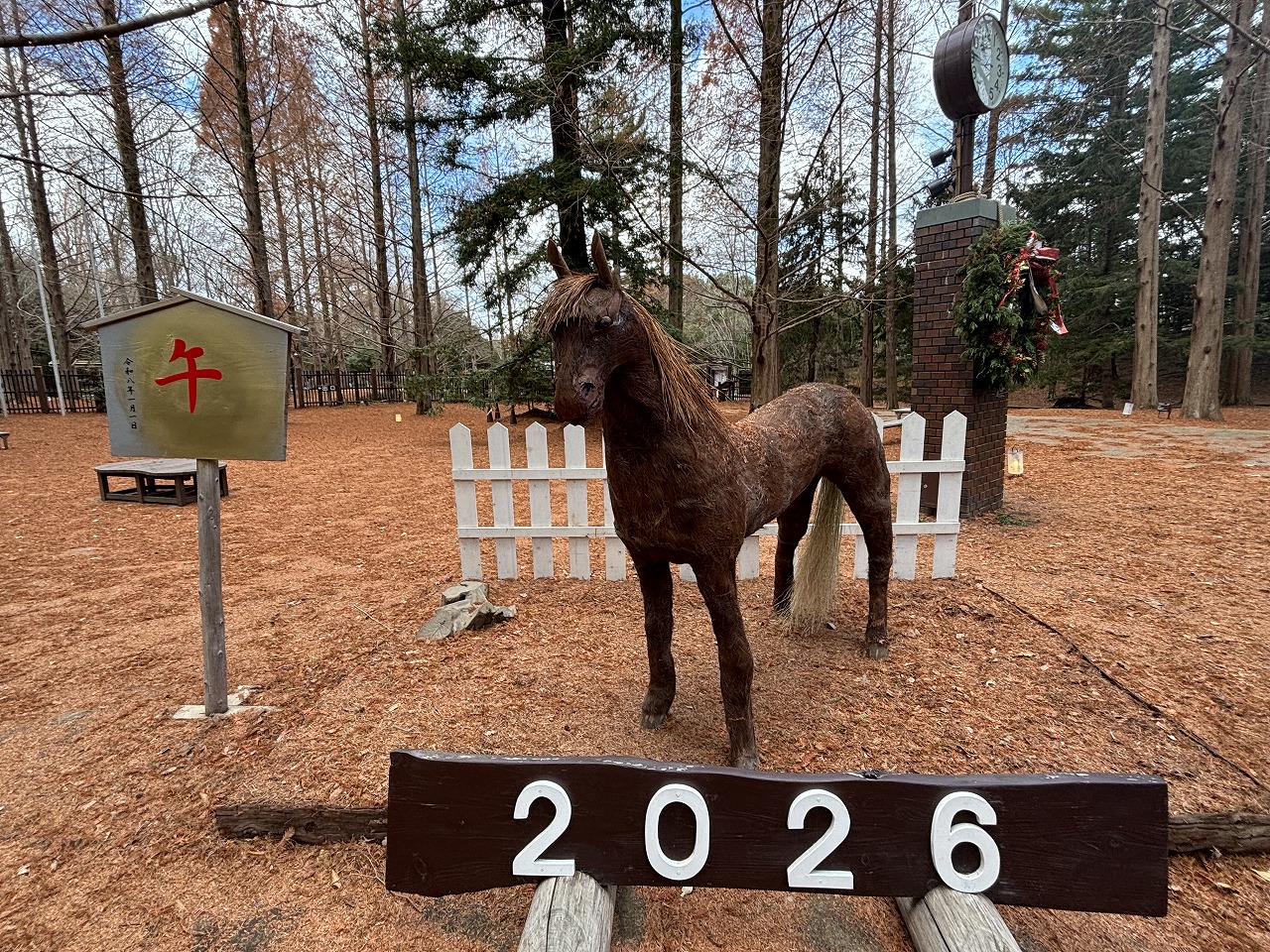 森林植物園では、新年を迎えるにあたり2026年の干支飾り「午」が登場!!